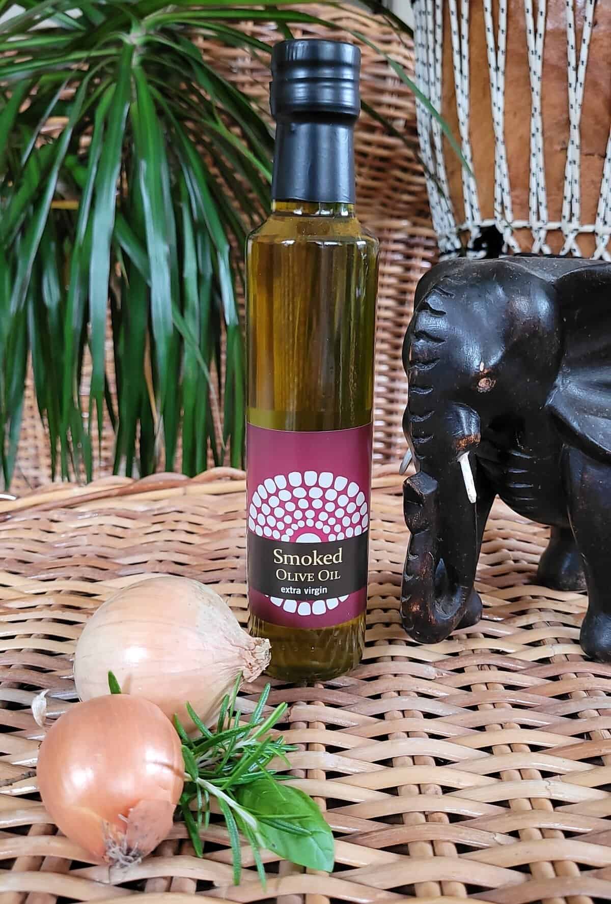Mit einem Hauch von Eichenholz-Rauch: Das extra native Olivenöl aus Missionsoliven vom Paarl-Valley wird mit einem kalten Rauchverfahren leicht geräuchert, was die typischen Aromen des Olivenöls fantastisch unterstützt. Eine absolute Spezialität!